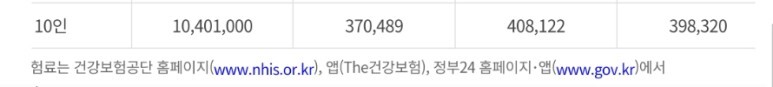 건강보험료는 전체 가구원 중 보험가입자의 본인부담금을 합산한다.